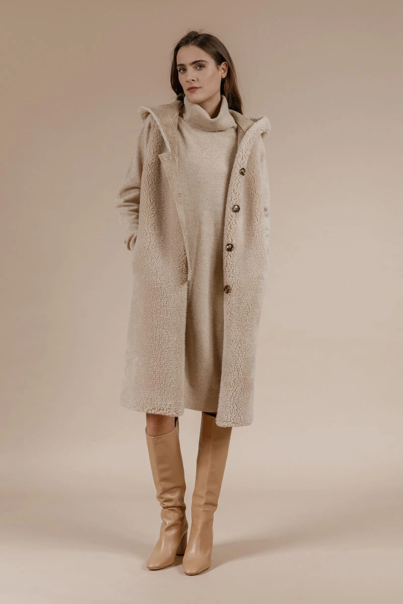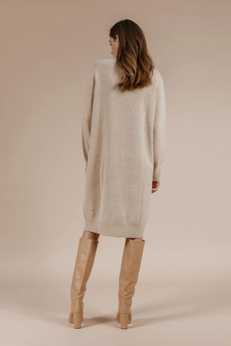Andiatan ihastuttava, tyylikäs neulemekko, joka on valmistettu laadukkaasta merinovillasta. Pitkähihainen neulemekko, jossa on iso poolokaulus, ja pitkä helma. Hihansuissa ja helmassa resorit sekä solmittava neulosvyö. Pitkä ja lämmin mekko yhdistettynä tyylikkäisiin nilkkureihin, toimii tilanteessa kuin tilanteessa. Tyylikäs ja mukava asu, joka sopii täydellisesti syksyyn!