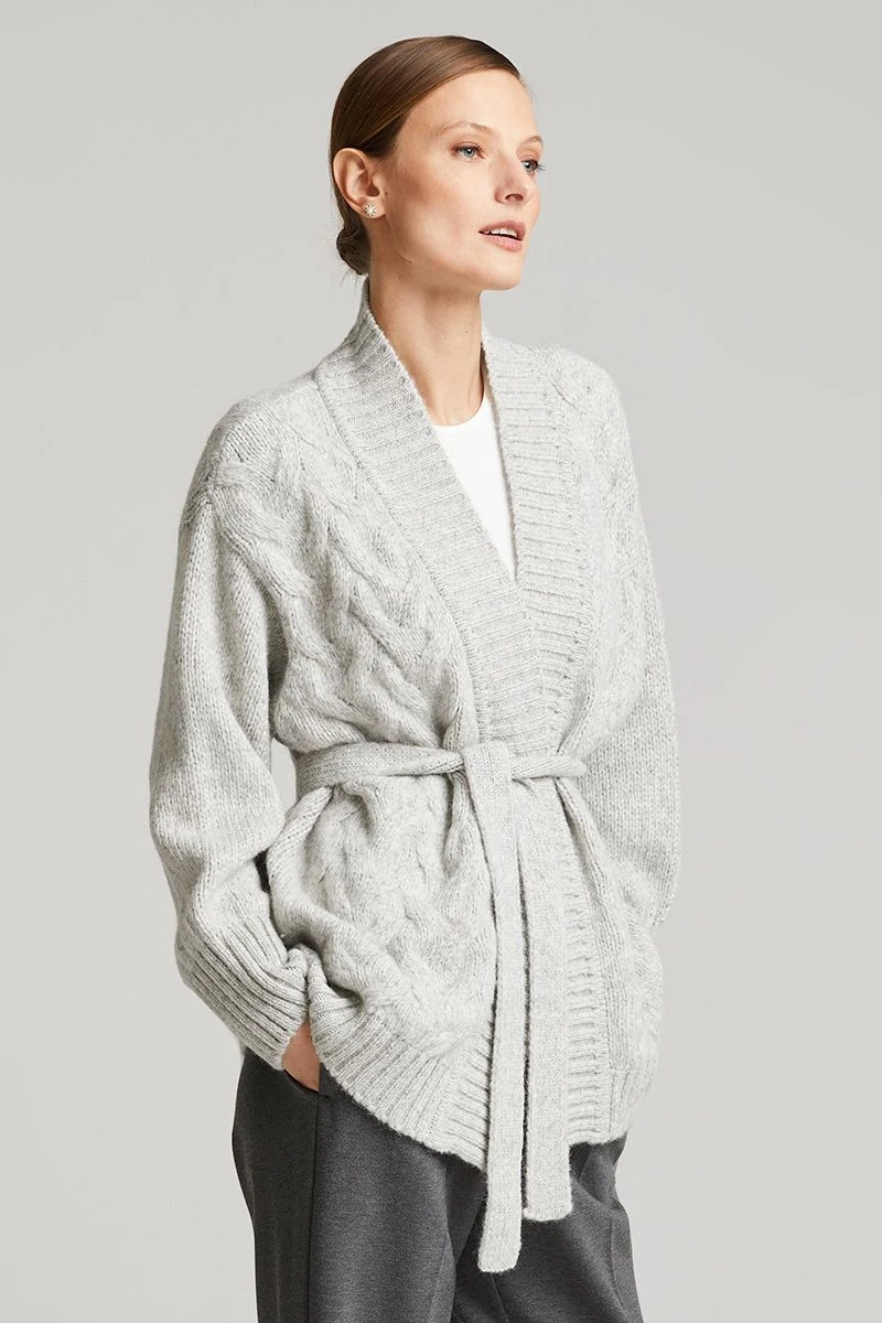 Andiata Naisten Villatakki, AUGUSTA CABLE KNIT Vaaleanharmaa