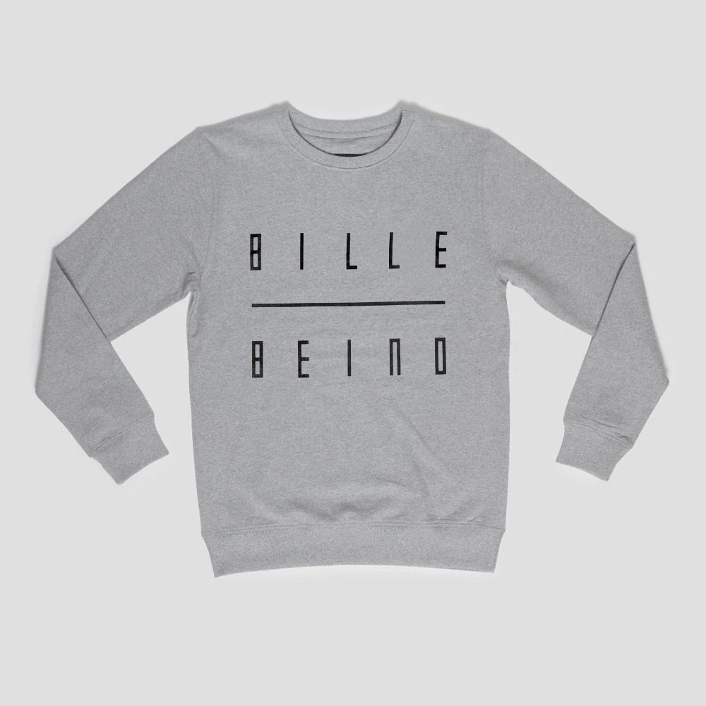 Billebeinon pehmeä unisex collegepaita kierrätettyä materiaalia. Pyöreä pääntie, edessä iso tekstiprintti. Sisäpuoli pehmeäksi nukattu..