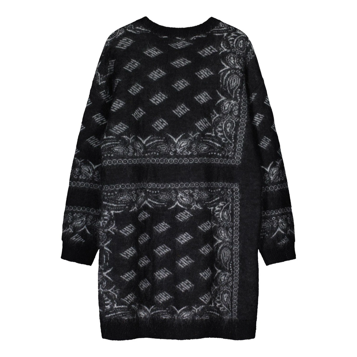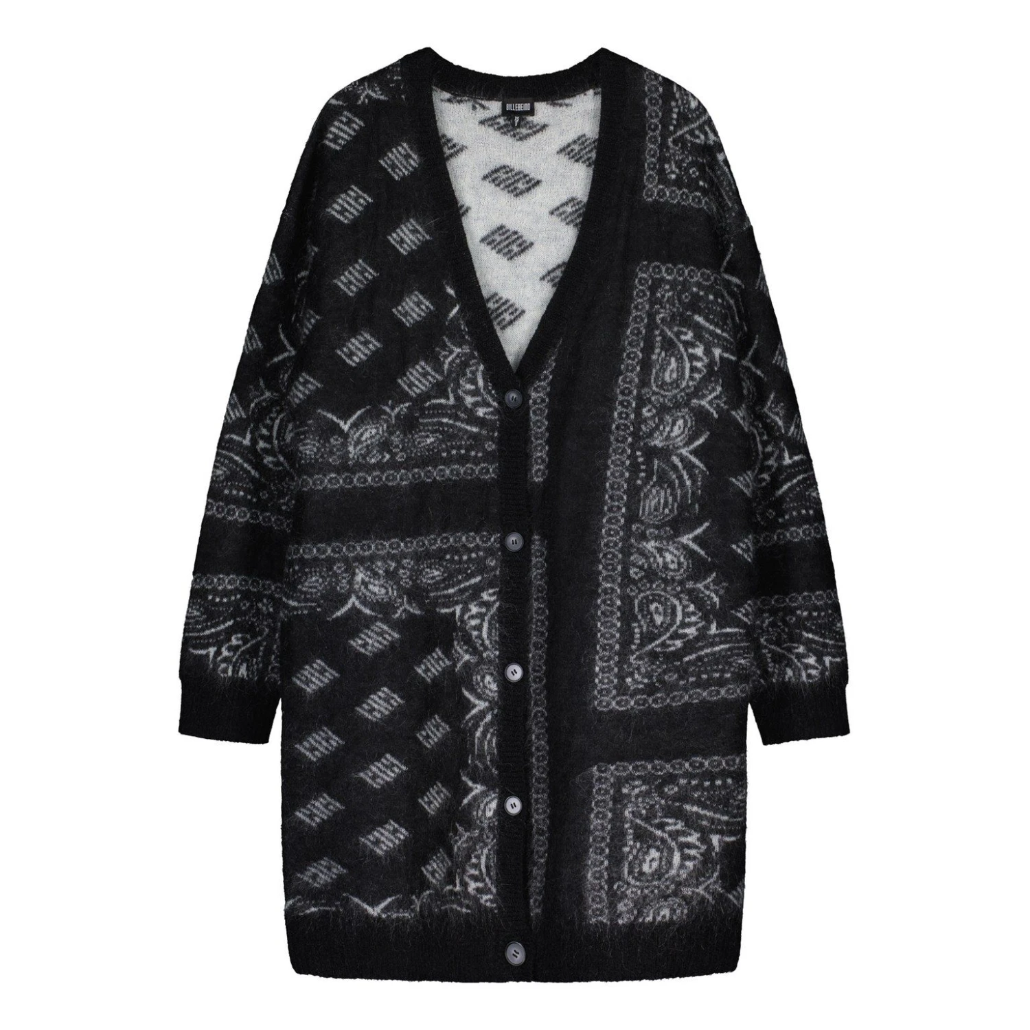 Billebeinon pitkä, kuviollinen neuletakki, joka on valmistettu pehmeästä ja lämpimästä mohair-sekoitteesta. Väljä malli ja pudotetut olkapäät.