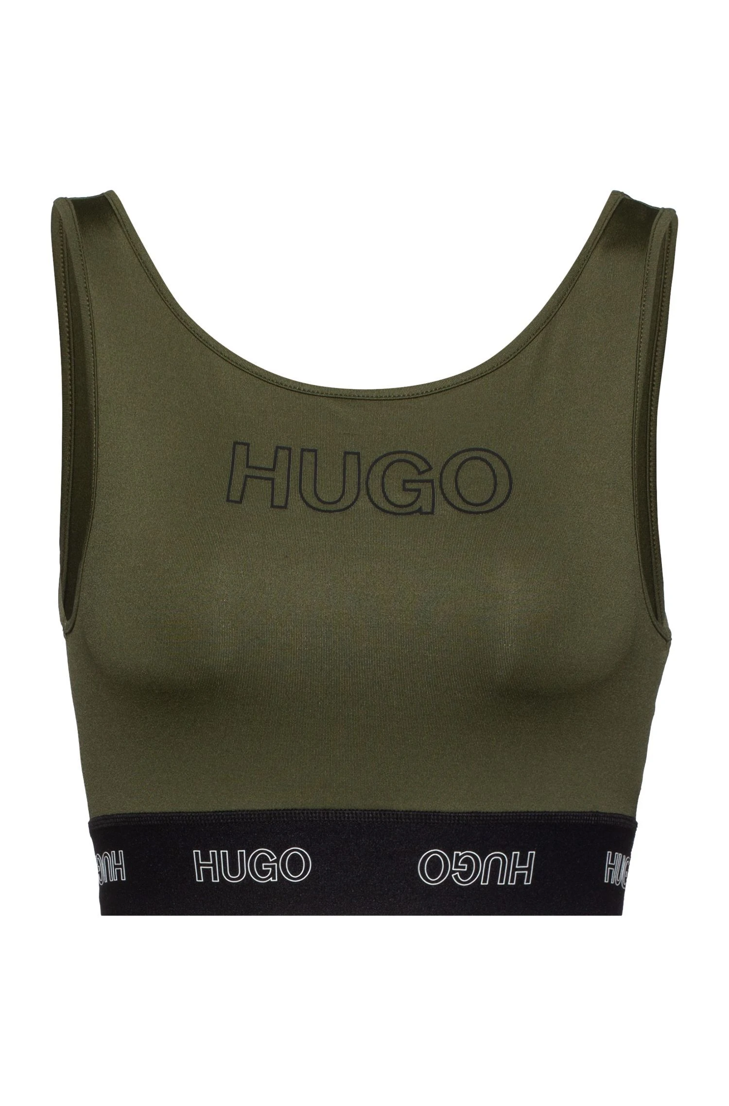 Boss Woman naisten toppi Hugo Bossin athleisure mallistoa. Rinnassa ja topin alareunassa Hugo Bossin logot.