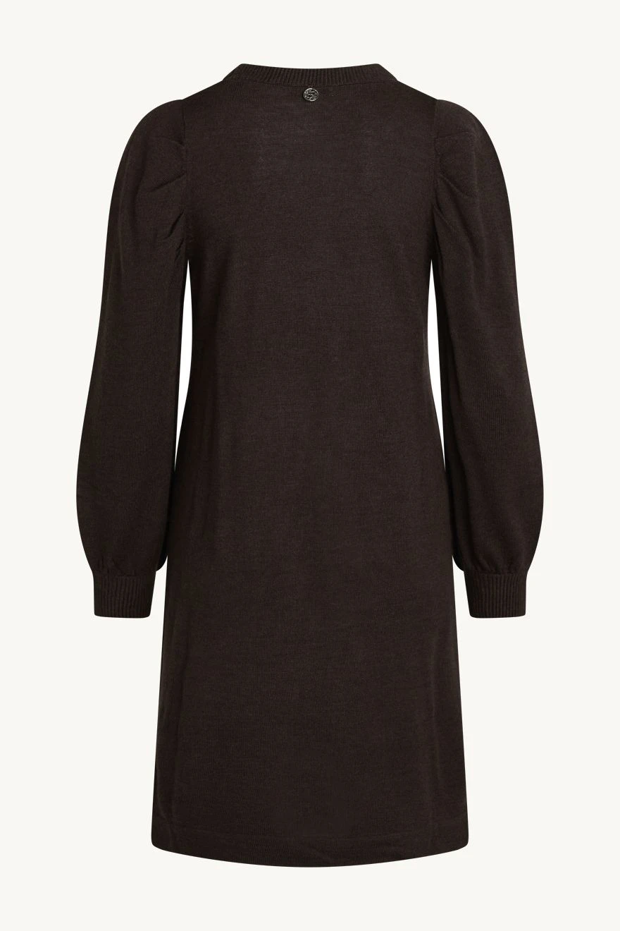Pitkähihainen suora neulemekko pehmeällä Easy Care Merinovillalla. Mekossa on ilmapallohihat ja kaulassa pieni hopeinen tunnus.