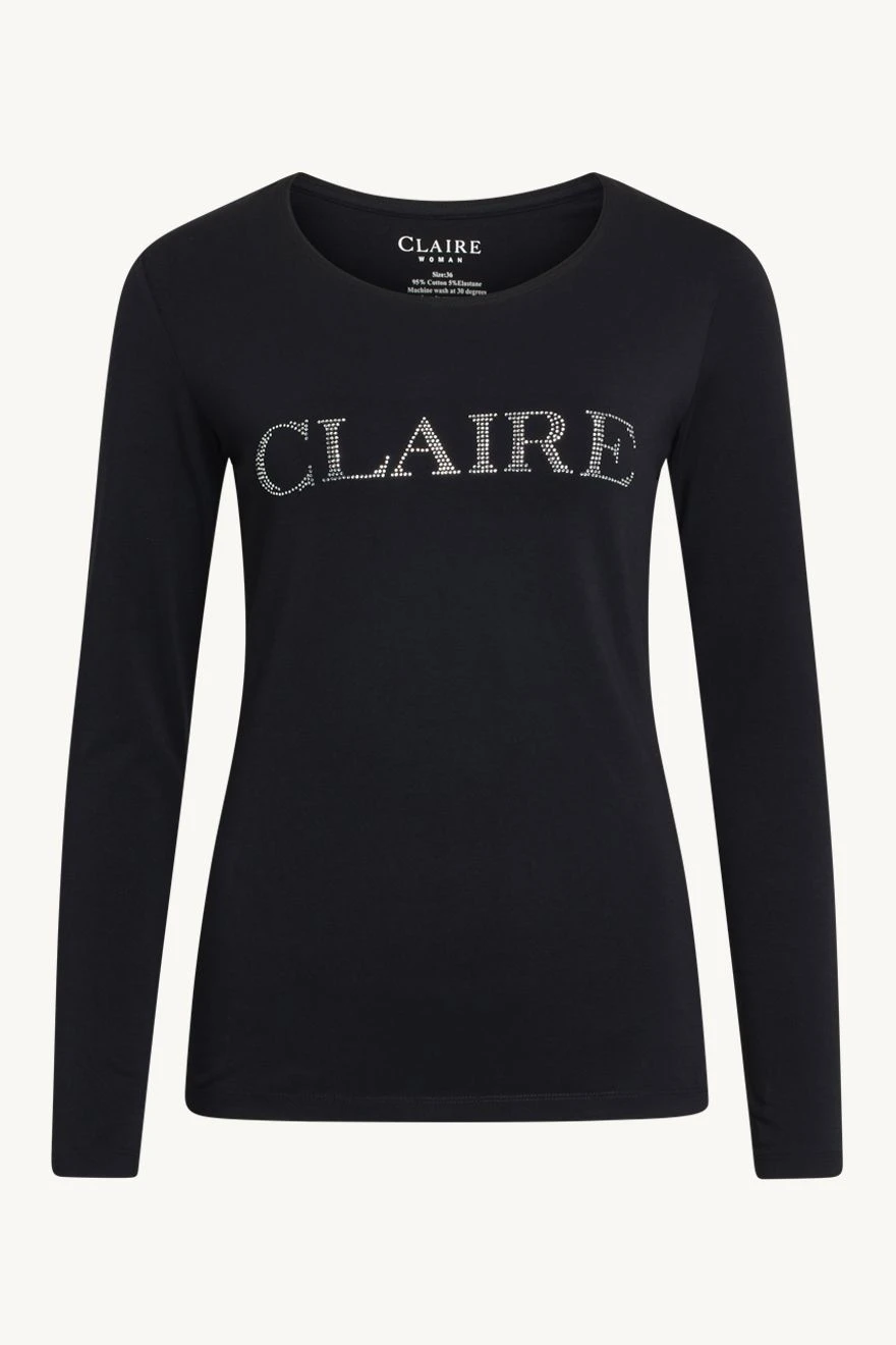 Clairen pitkähihainen trikoopusero. O-pääntie, edessä kimaltava strassilogo.