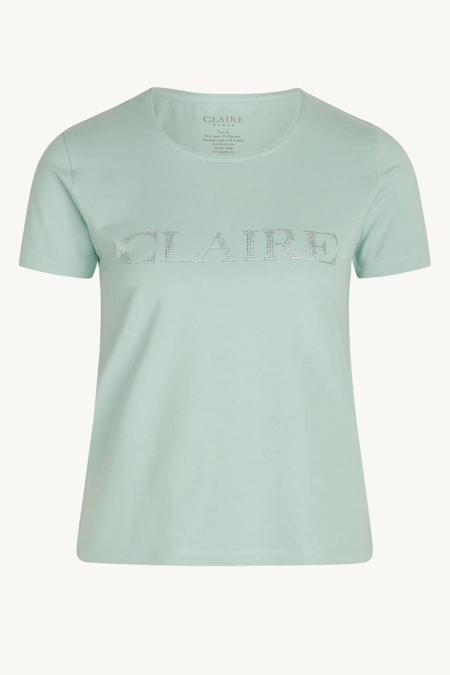 Naisten lyhythihainen t-paita pehmeää, joustavaa trikoota, rinnassa strasseilla tehty Claire-logo