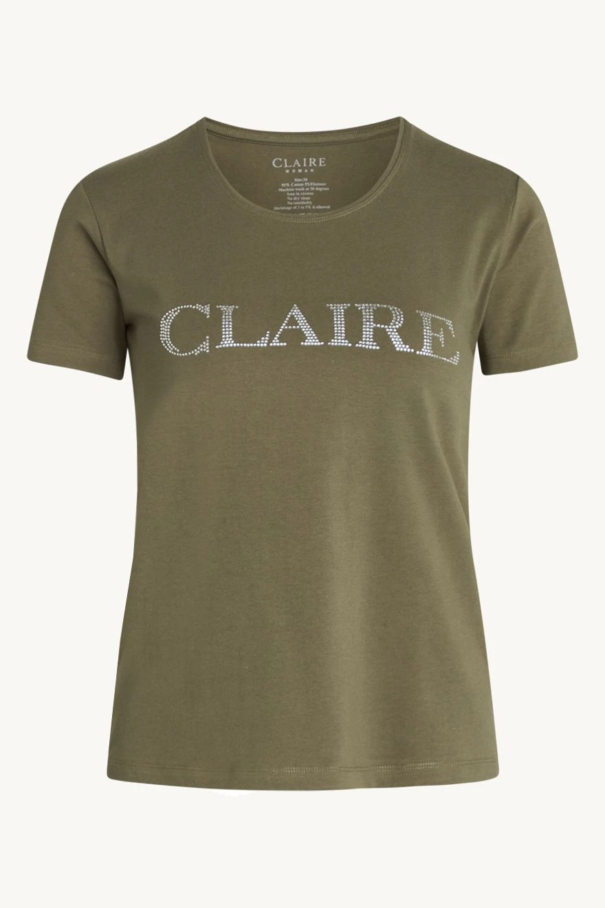 Clairen klassinen lyhythihainen t-paita, jossa on pyöreä pääntie sekä strassikoristeinen Claire-logo koristaa toisessa hihassa.