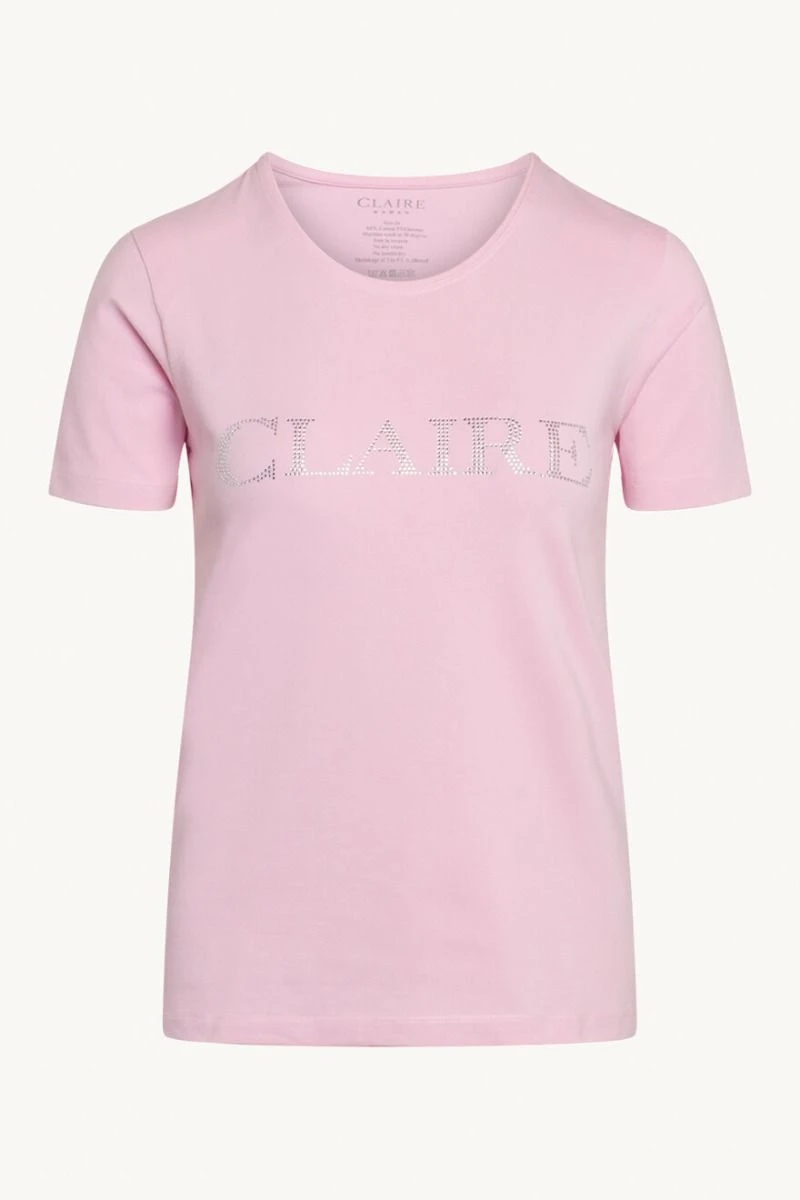 Clairen klassinen lyhythihainen t-paita, jossa on pyöreä pääntie sekä strassikoristeinen Claire-logo koristaa toisessa hihassa.