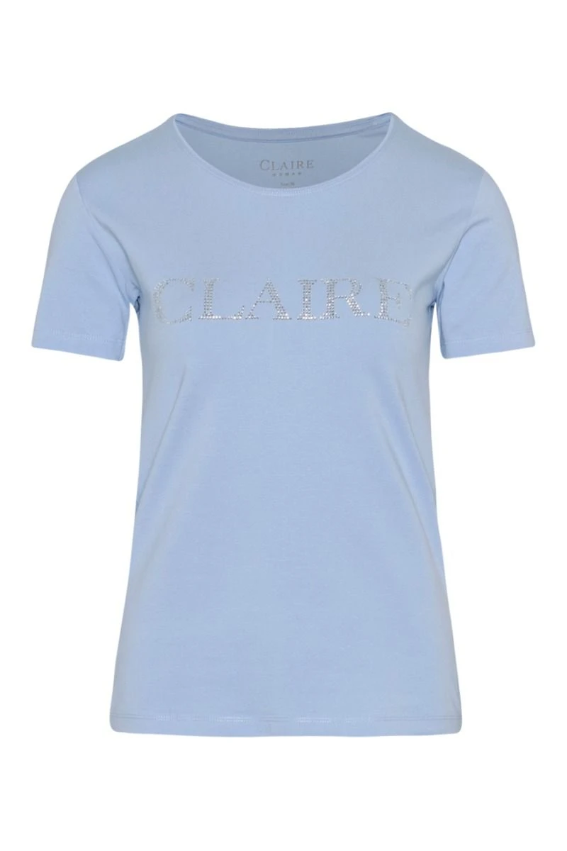 Clairen klassinen lyhythihainen t-paita, jossa on pyöreä pääntie sekä strassikoristeinen Claire-logo koristaa toisessa hihassa.