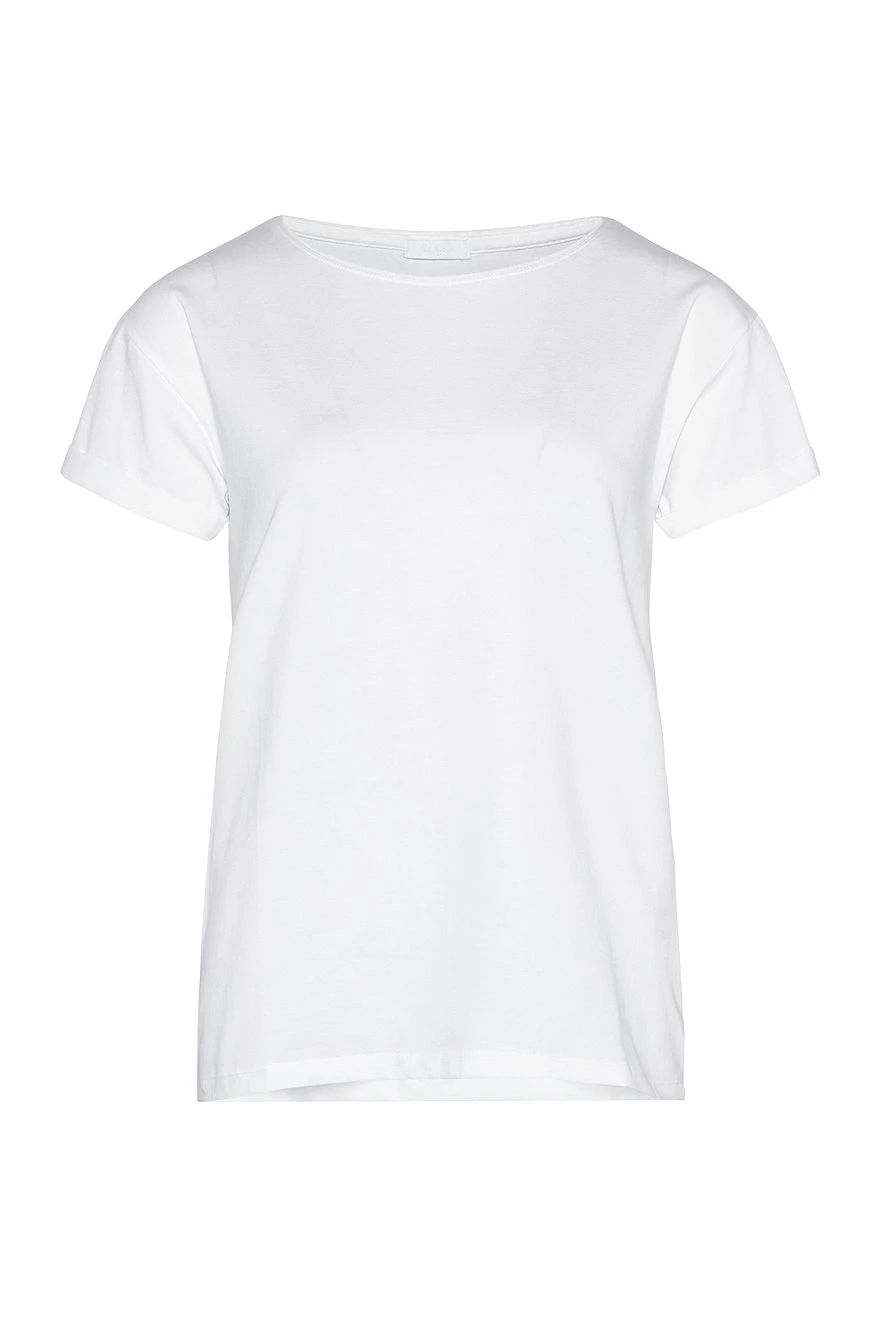 Naisten yksivärinen t-paita. O-pääntie, käännetyt hihansuut.