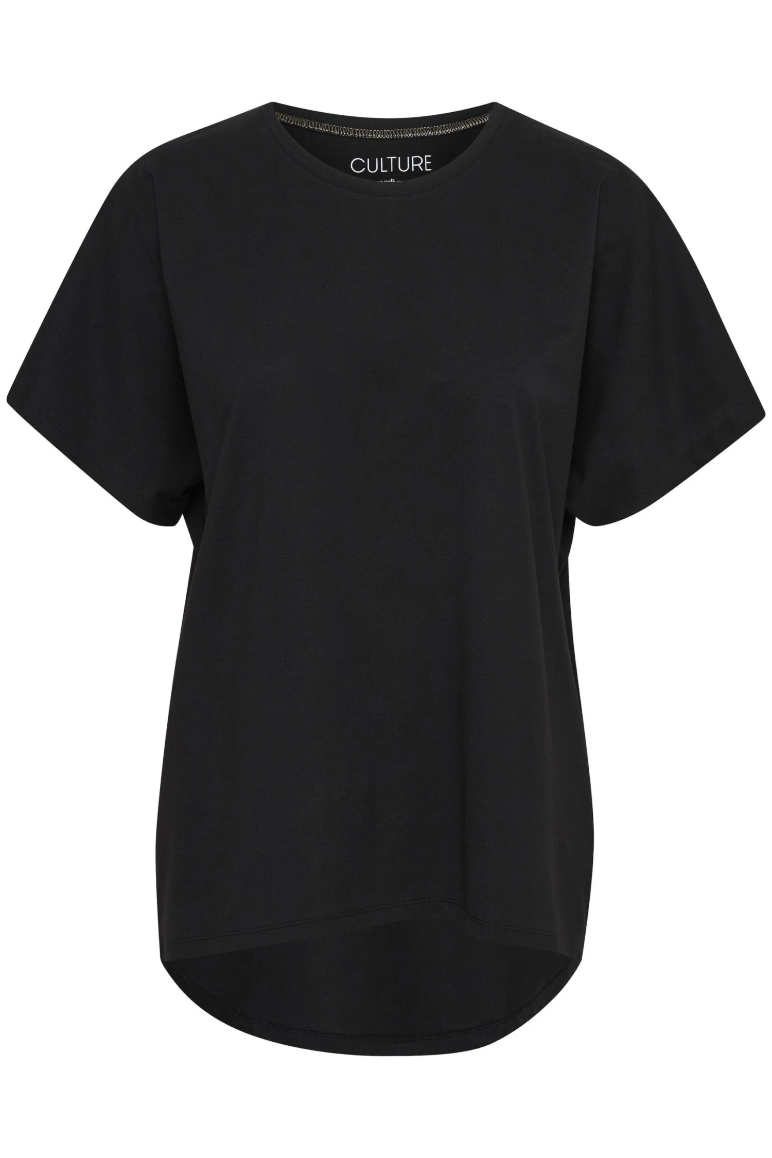 Naisten lyhythihainen, ylisuuri t-paita. Helma takaa hieman pidennetty, pituus koossa XS 74 cm.