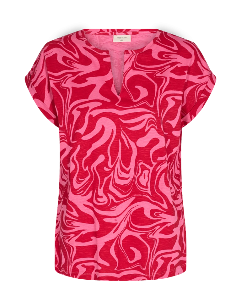 FREEQUENT paita, jossa cap-hihat ja v-pääntie. Hihojen päät on viimeistelty kiinteällä päällyksellä.