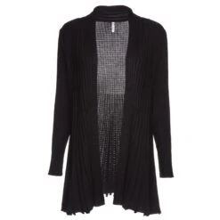 Naisten ohut, pitkä neuletakki. Kaunista koristeneulosta, edessä ei kiinnityksiä. Koossa M pituus n.83 cm.