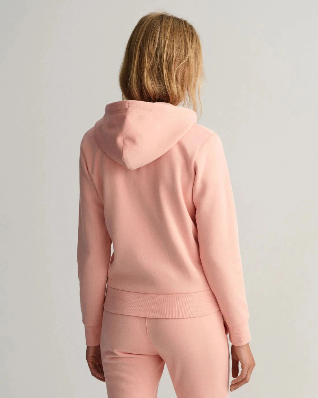 Naisten vetoketjuhuppari, jonka hupussa on kiristysnyöri ja rinnassa kiiltävällä langalla kirjailtu Gantin Archive Shield -logo.