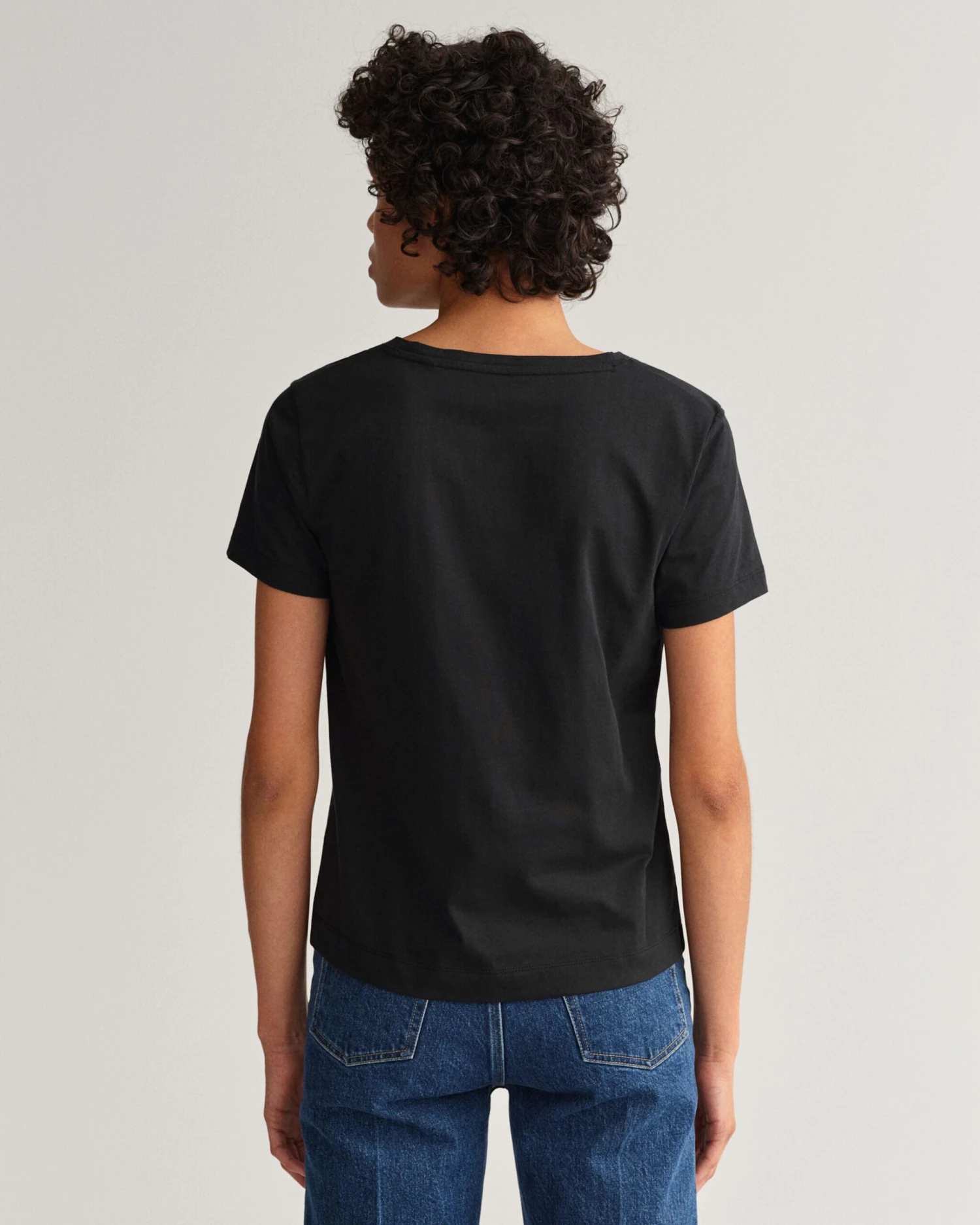 Naisten lyhythihainen t-paita, v-pääntie. Normaali istuvuus. Rinnassa kirjailtu Gant – logo.