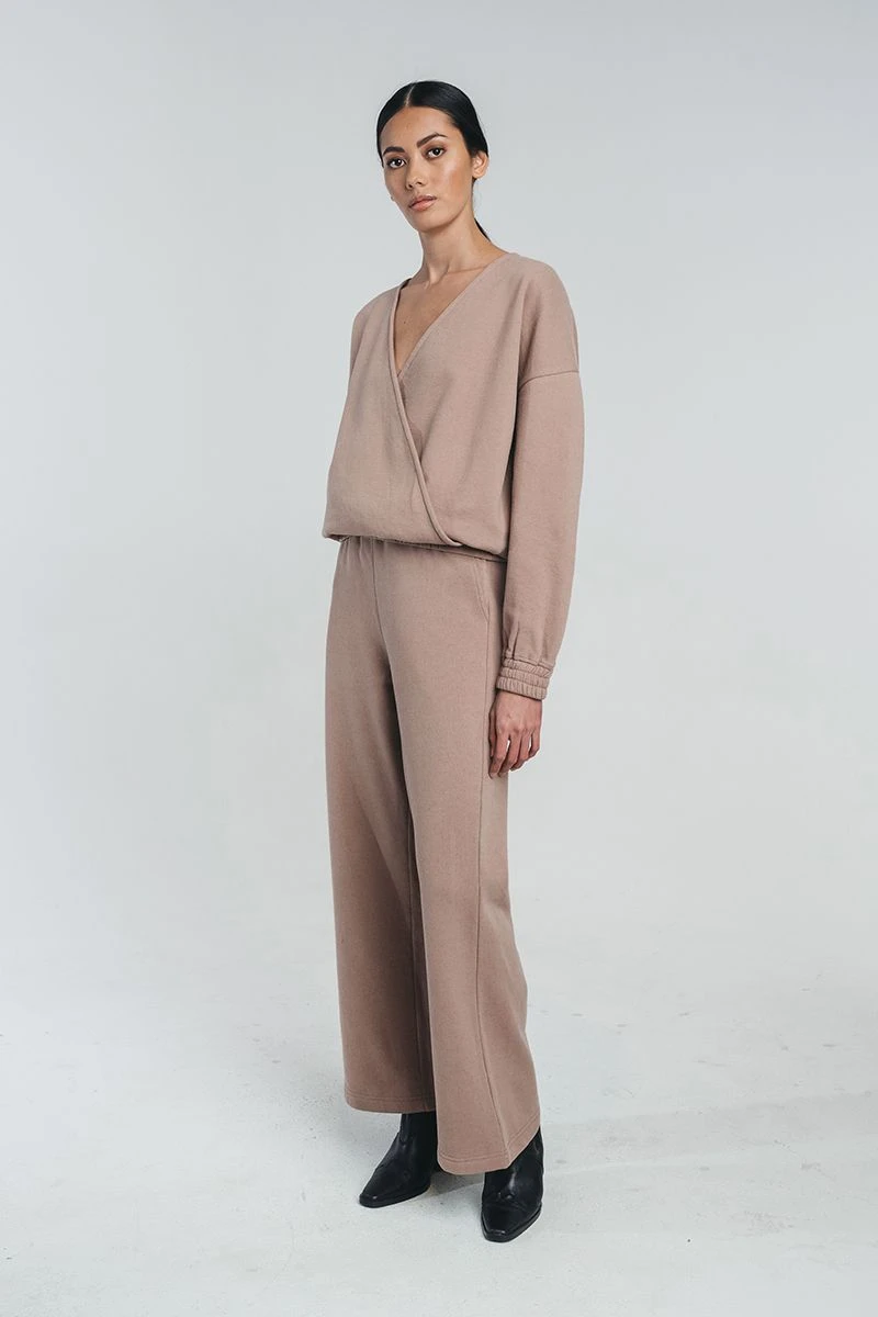 Kaunis ja pehmeä kietaisumallinen collegepusero luomupuuvillan ja luomuvillan sekoitetta. Madalletut olkapäät. Joustot helmassa ja hihansuissa.
