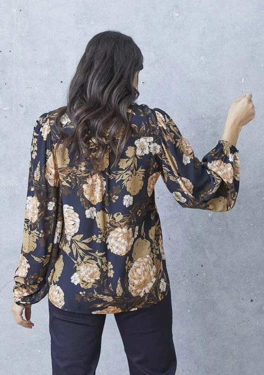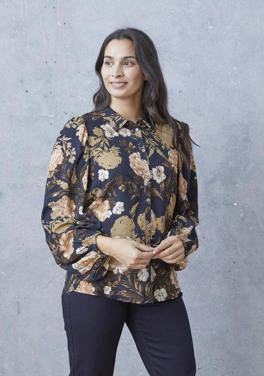 Paisley-kuvioinen kauluksellinen paitapusero, jossa mukavan väljä istuvuus. Hihat on leveät ja hihansuussa kuminauhaa.