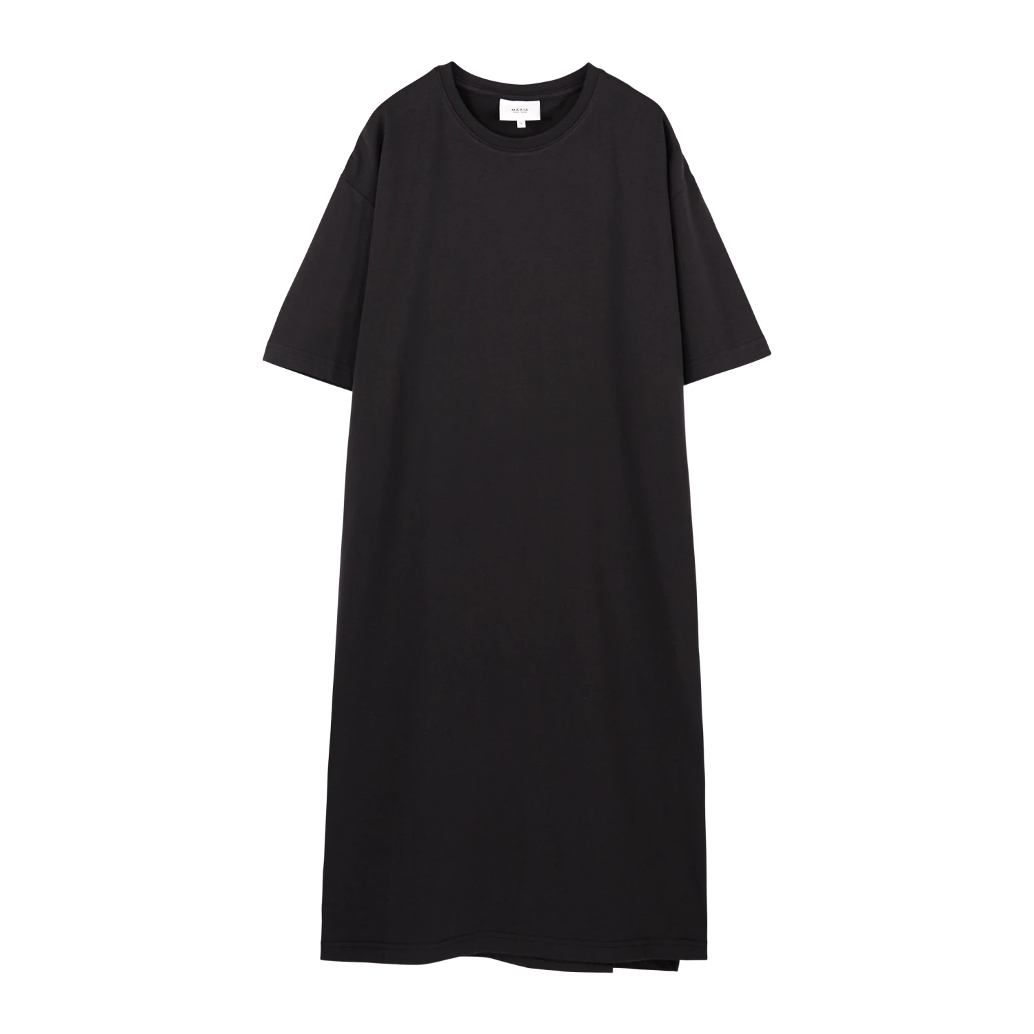 Naisten rennon väljä trikoomekko, jossa pudotettu olkasauma ja helmassa sivuhalkiot. Mekossa on myös sivusaumaan upotetut taskut.