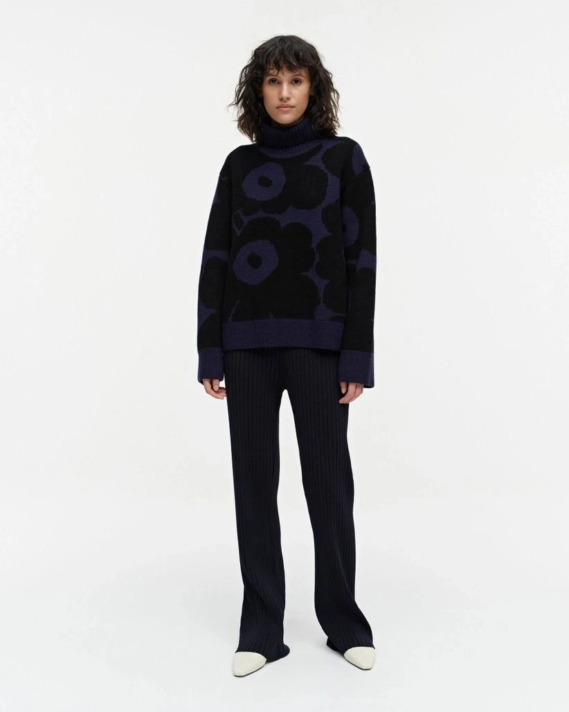 Marimekko, Naisten Neule, RUDIA UNIKKO VILLANEULEPUSERO Musta Kuosi