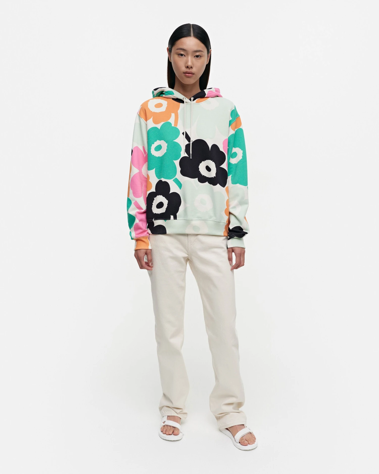 Tuote on valmistettu 100-prosenttisesti luomupuuvillasta. Hupparit on ommeltu koko kankaan leveydeltä, ja tämän vuoksi niiden ulkoasu saattaa vaihdella. Jokainen tuote on yksilö.