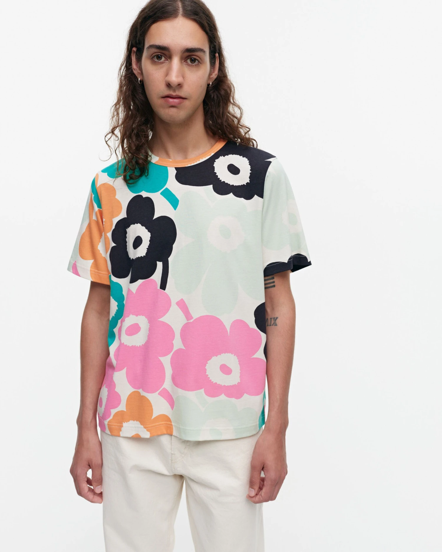 Tuote on valmistettu 100-prosenttisesta luomupuuvillasta. Paidat on ommeltu koko kankaan leveydeltä, ja tämän vuoksi niiden ulkoasu saattaa vaihdella. Jokainen tuote on yksilö.