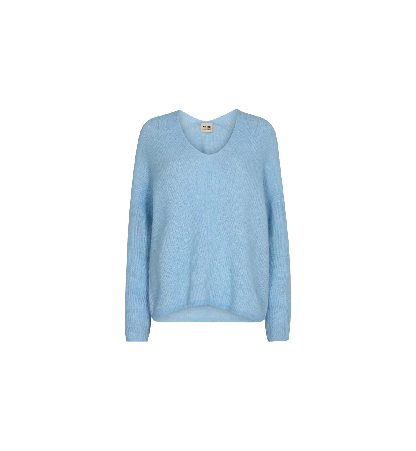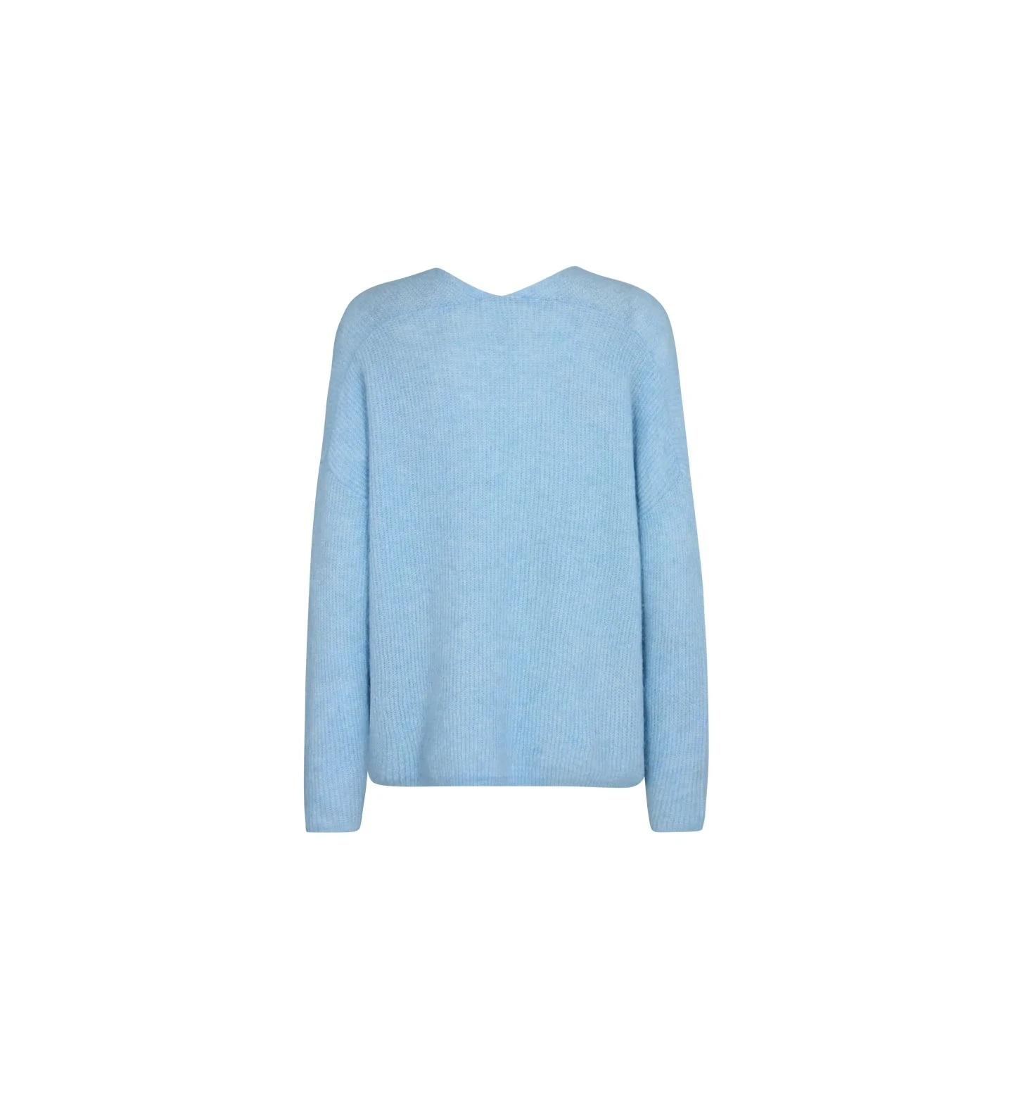 Mos Moshin pehmeä ja pörröinen neulepaita, joka on valmistettu lämpimästä alpakkasekoitteesta. Rento ja väljä istuvuus, pudotetut hartiat ja V-pääntie, myös niskasta.