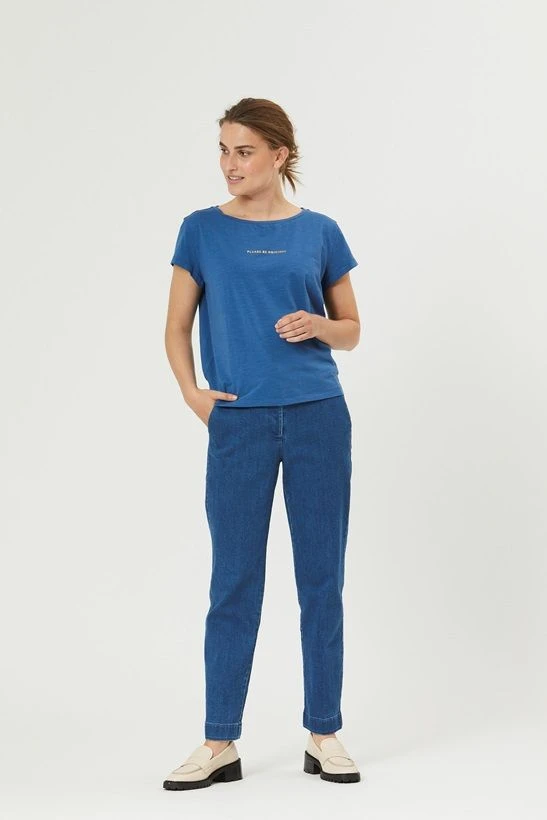 Naisten lyhythihainen t-paita, väljä istuvuus. Kullanväriset logokirjaimet edessä.