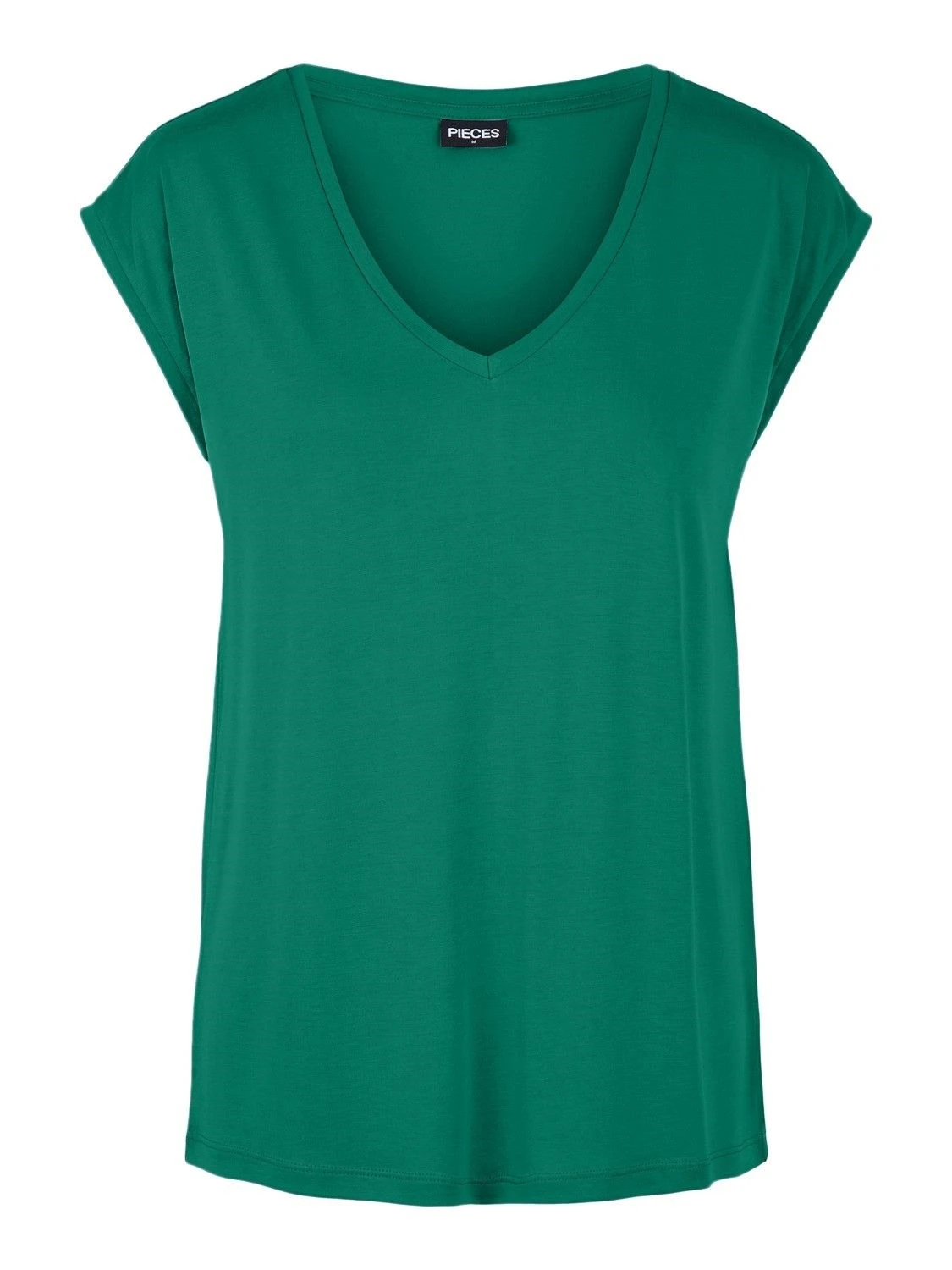 Pieces T-paidassa on joustava ja miellyttävä laatu. Pääntienä kaunis V. Suora istuvuus..