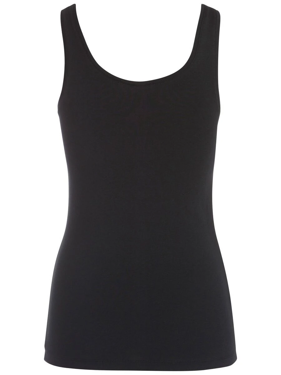 Naisten hihaton toppi joustavaa puuvillasekoitetta. Kapea istuvuus. U -pääntie.