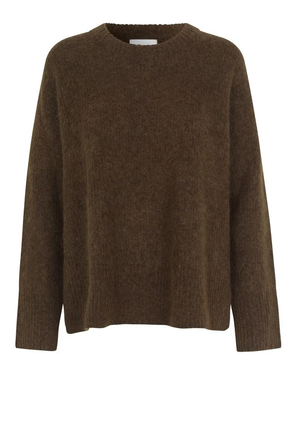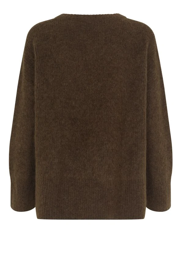 Naisten neule, pyöreä pääntie ja raglanhihat, väljä istuvuus. Pehmeässä mohairsekoiteneuleessa on pääntiellä, helmassa ja hihansuissa yksityiskohtina kontrastineulokset. Suora helma ja hihansuut.