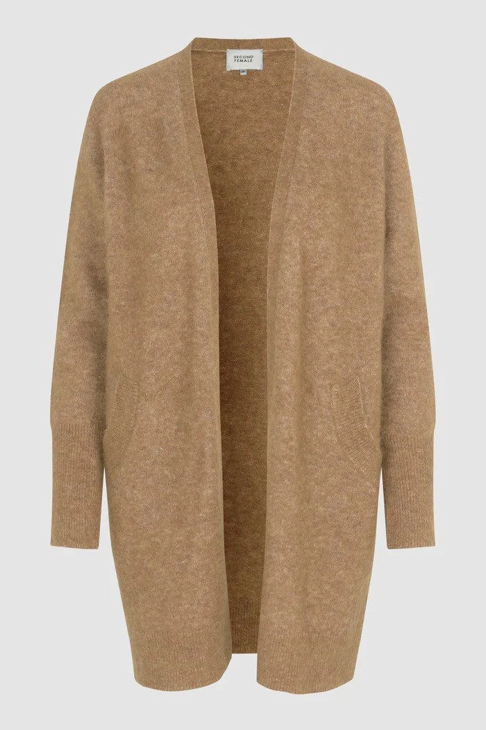 Naisten pitkä neuletakki, joka valmistettu pehmeästä mohairin ja villan sekoitteesta. Avoin malli, väljä istuvuus ja taskut. Hihansuissa, helmassa, edustassa sekä taskuissa joustinneulosta.
