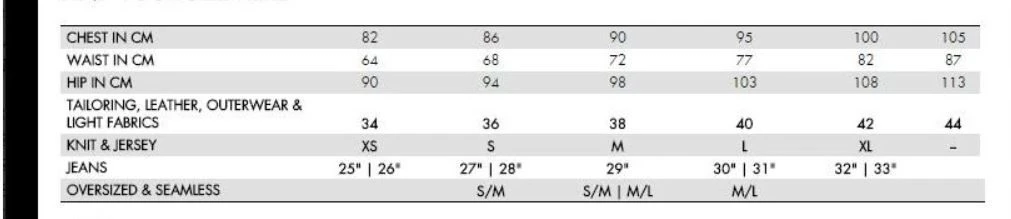 | Koko | XS, S, M, L, XL |