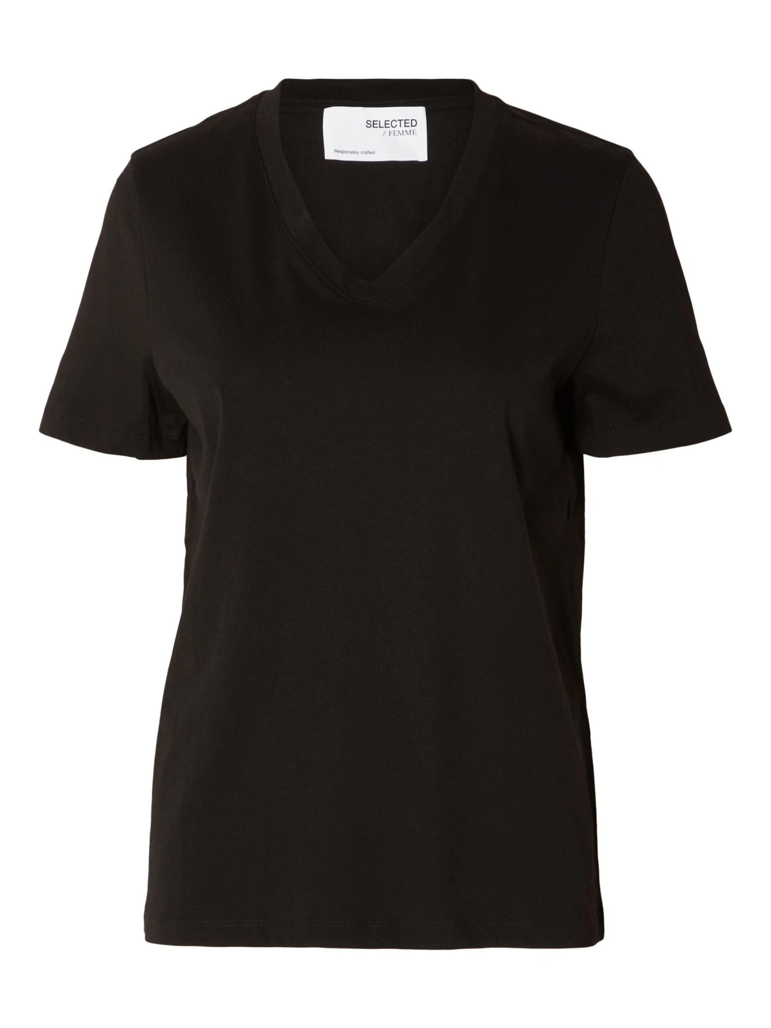 Selected Femme Naisten T-paita SLFESSENTIAL SS V-NECK TEE NOOS Musta