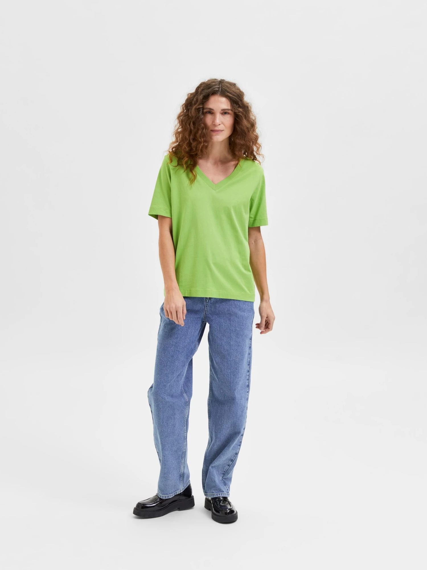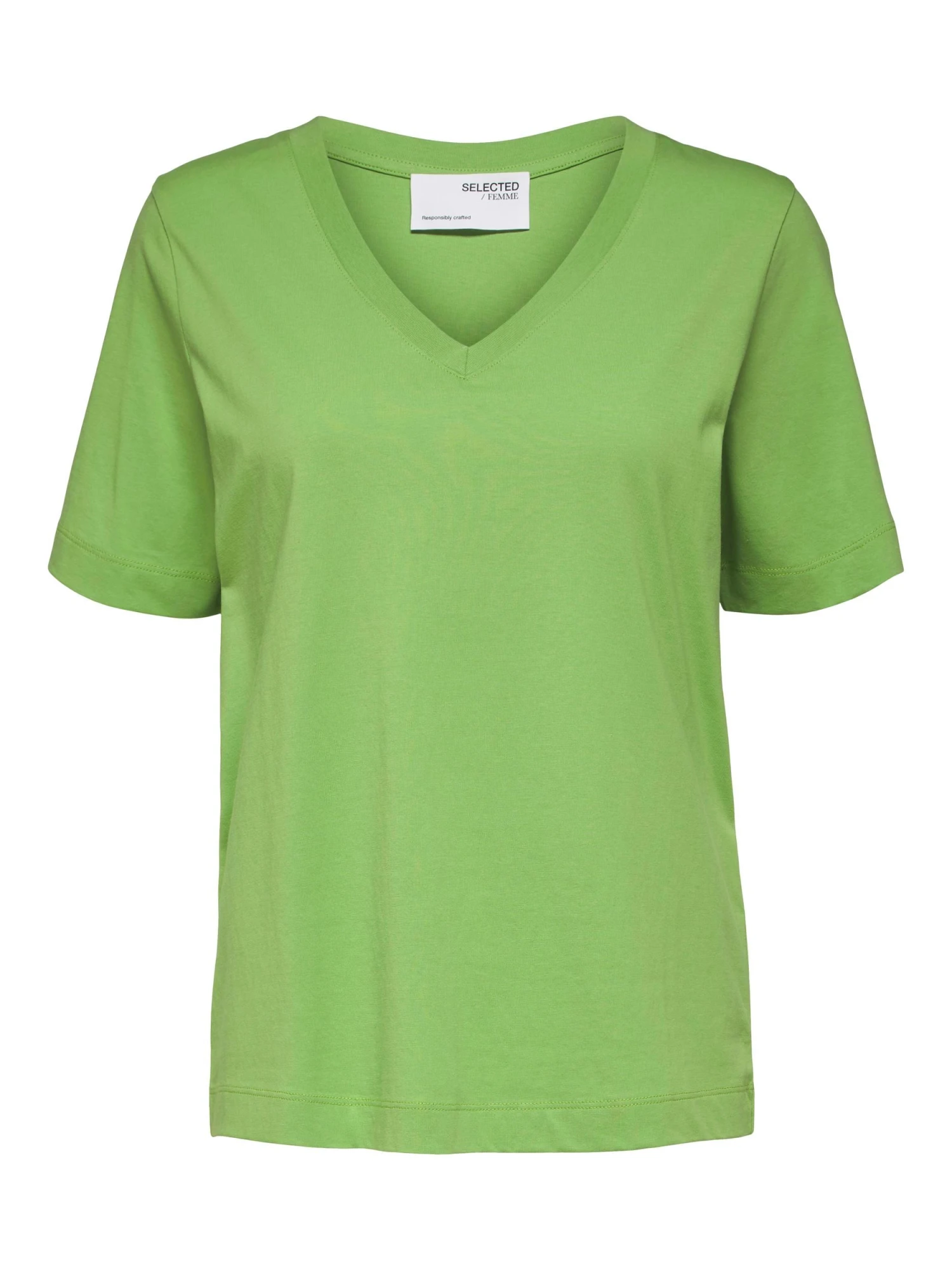 Selected Femme Naisten T-paita SLFSTANDARD SS V-NECK TEE Ruohonvihreä
