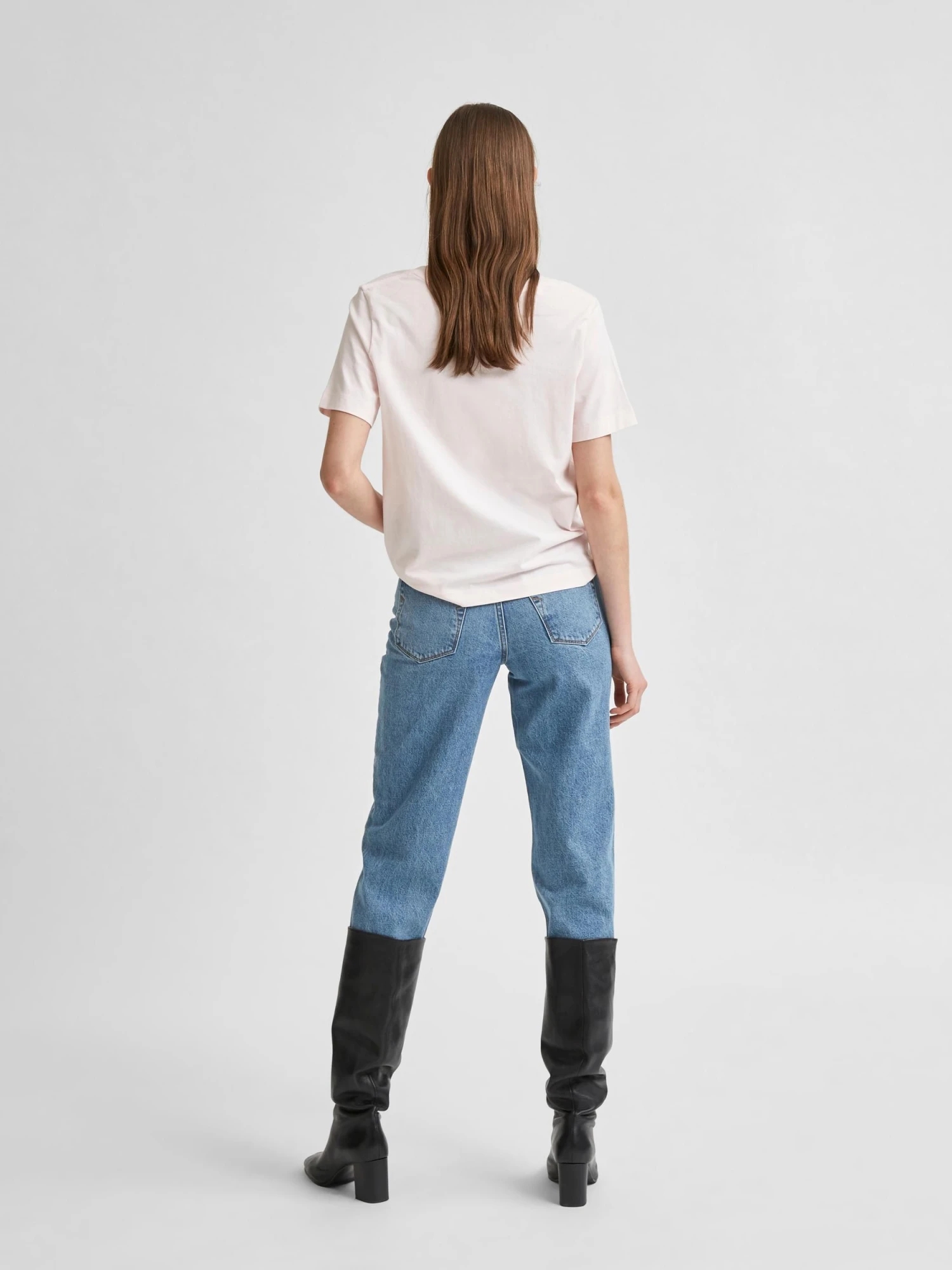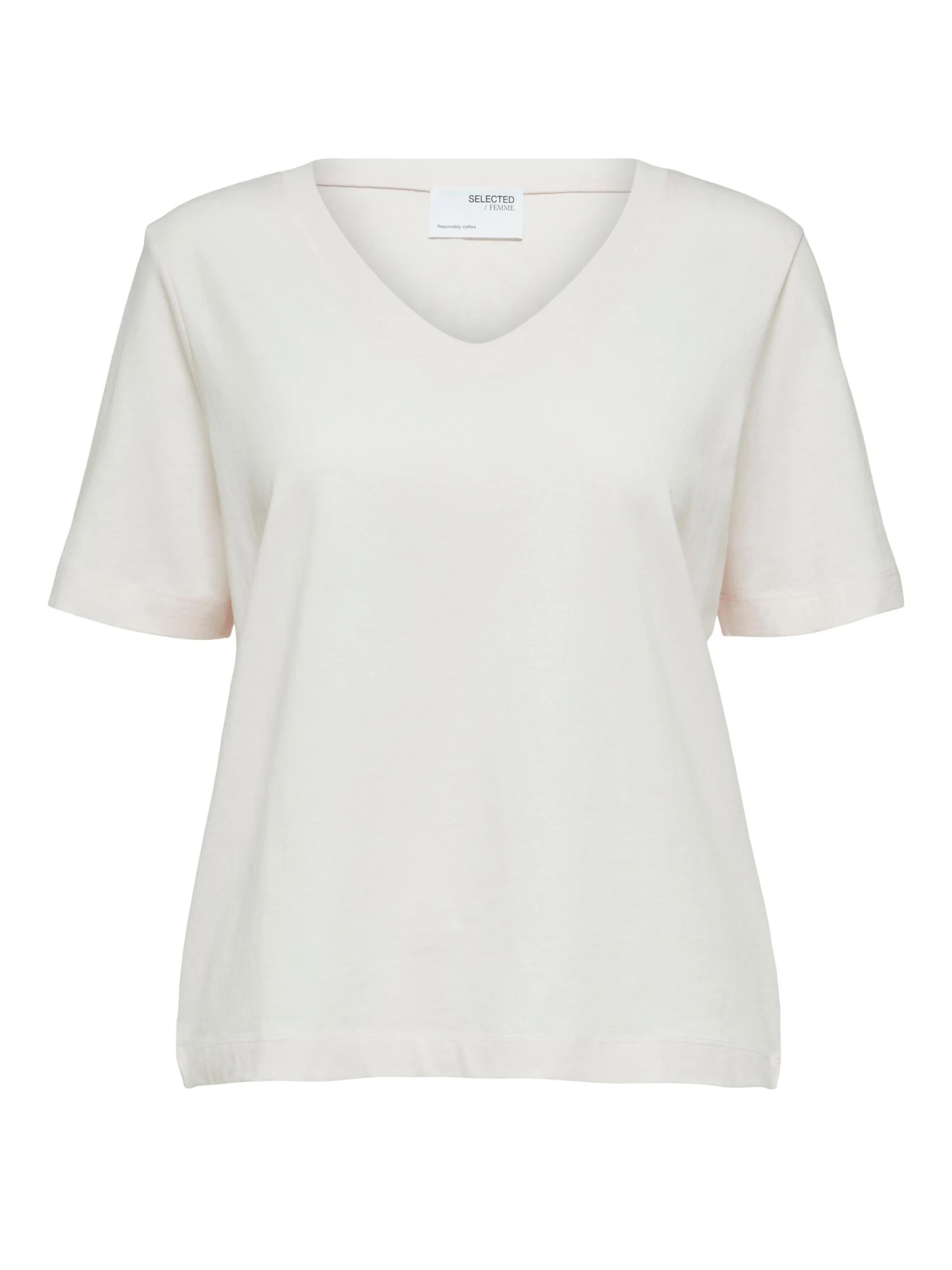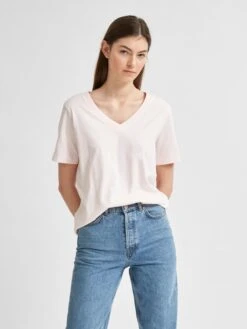 Selected Femme Naisten T-paita, SLFSTANDARD SS V-NECK TEE Vaaleanpunainen