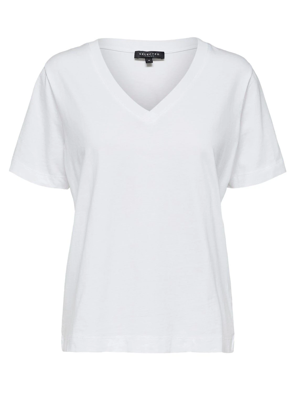 Selected Femme Naisten T-paita, SLFSTANDARD SS V-NECK TEE Valkoinen