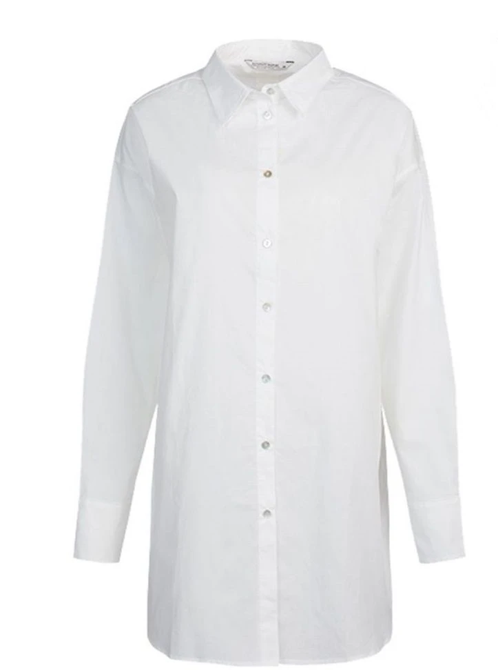 Naisten väljän mallinen pusero, jossa yhdistyvät paitapuseron klassisuus sekä väljän mallin rentous. Paitapuserossa kääntökaulukset, pitkät hihat ja edessä napitus. Reilusti väljä mitoitus ja hieman pyöristetty helma. Materiaali miellyttävää puuvillaa.
